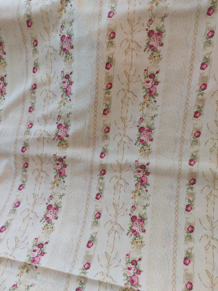 RuRu Bouquet cotton fabric by Quilt Gate Ru2420-13A Ribbons and Roses on cream