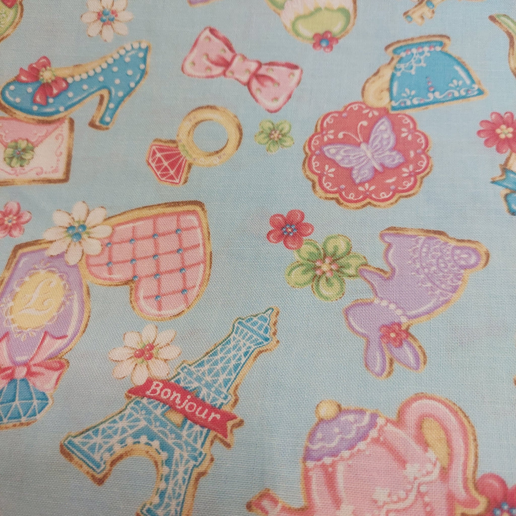 Afternoon Tea cotton fabric by Cosmo AP35407-2C Blue background