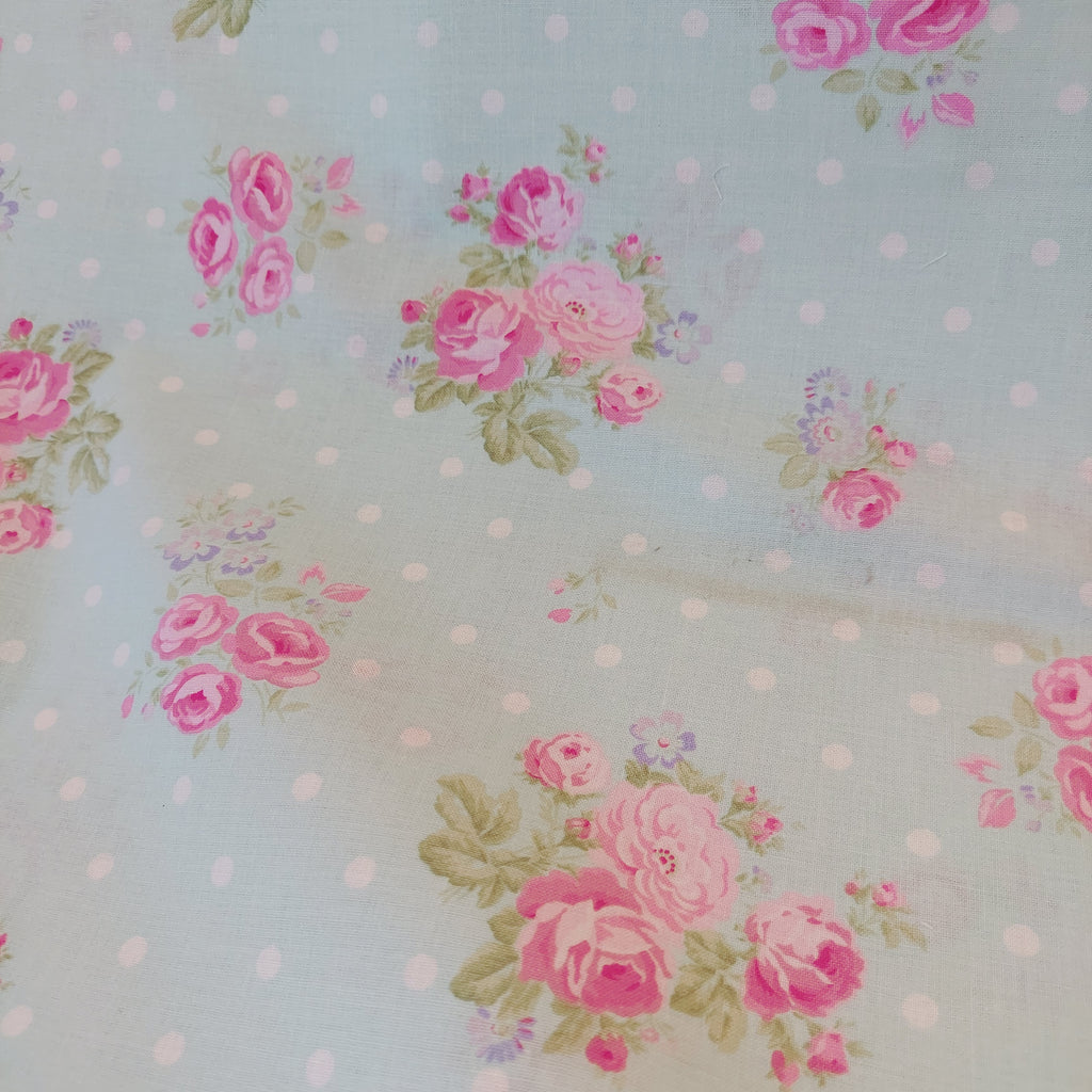 Savannah Bed Breakfeast by Fabric Traditions Cotton Fabric Roses on pale aqua 12142