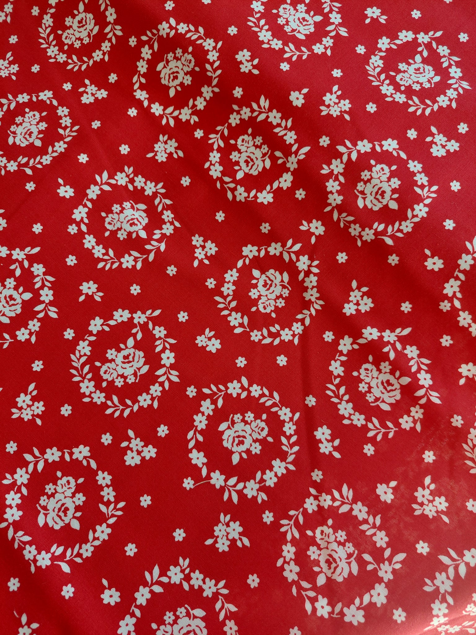 Flower Sugar cotton fabric by Lecien 30367-30 Wreaths on Red
