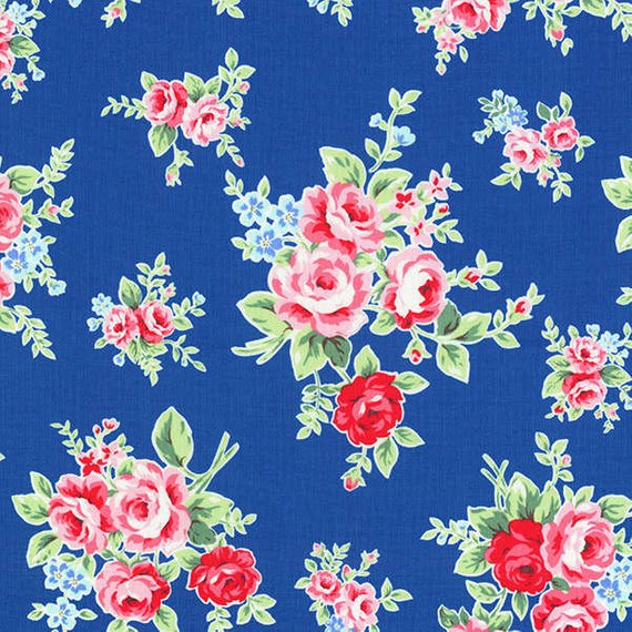 Flower Sugar cotton fabric by Lecien 30841-77 Rose Bouquet on Blue