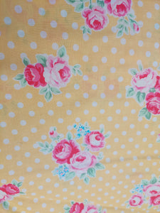 Flower Sugar cotton fabric by Lecien 31375-50 Roses on Yellow with Cream Dot