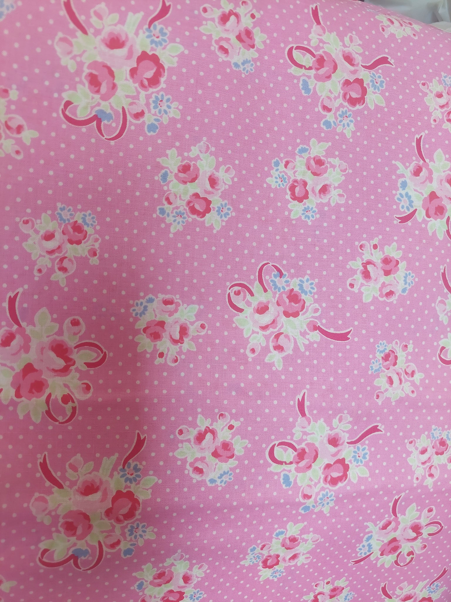 Flower Sugar cotton fabric by Lecien 31378-20 Ribbons and Roses pink