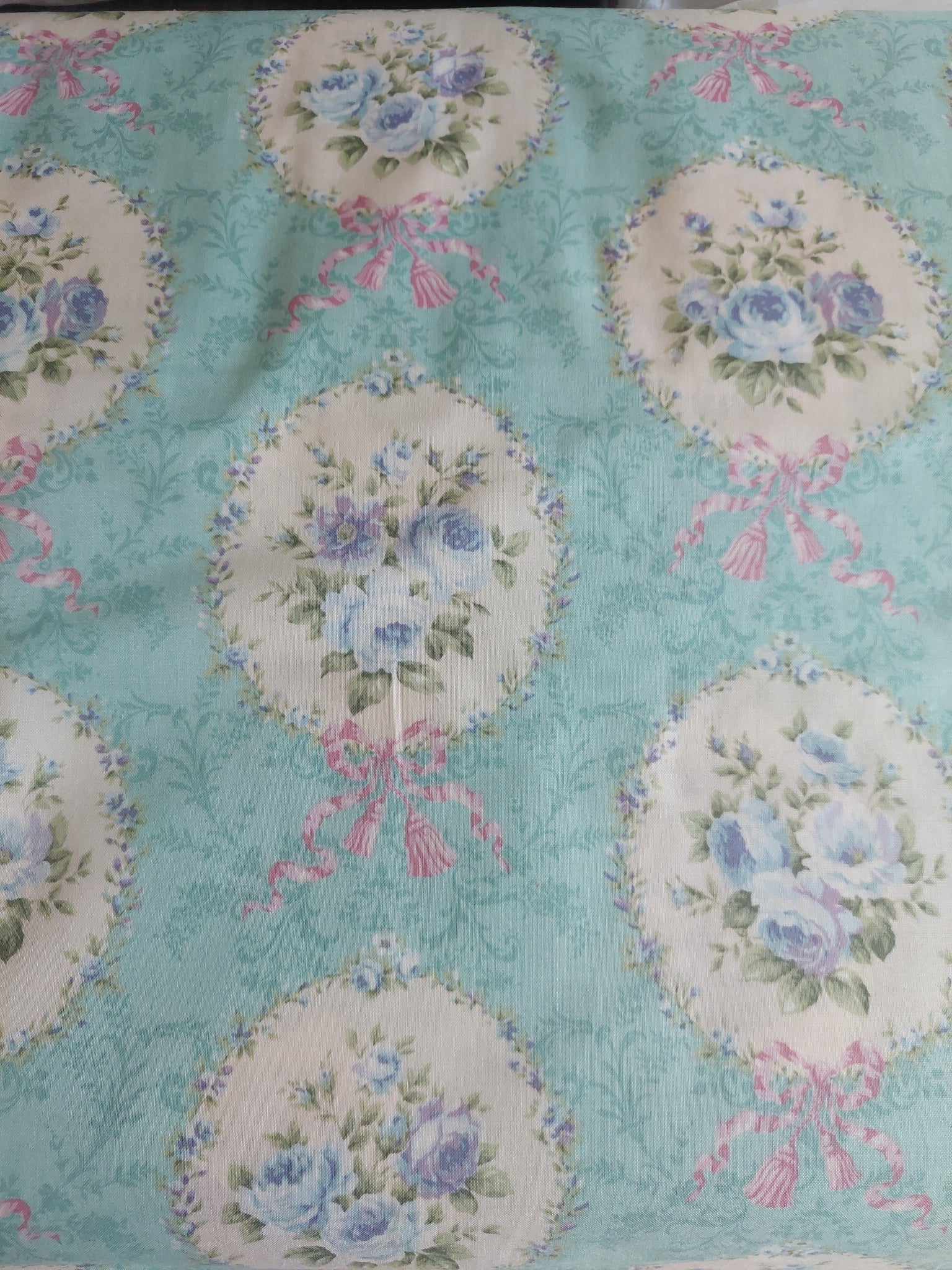 Rococo and Sweet fabric by Lecien 31054-70 Cameos of Roses on Blue