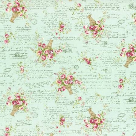 Rococo and Sweet fabric by Lecien 31363-60 Rose Baskets on Blue/Green