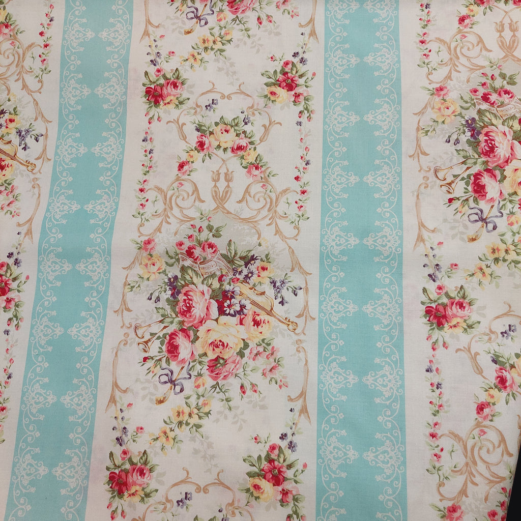 Rose Garden RU2410-12C Floral with Blue Stripe Quilt Gate