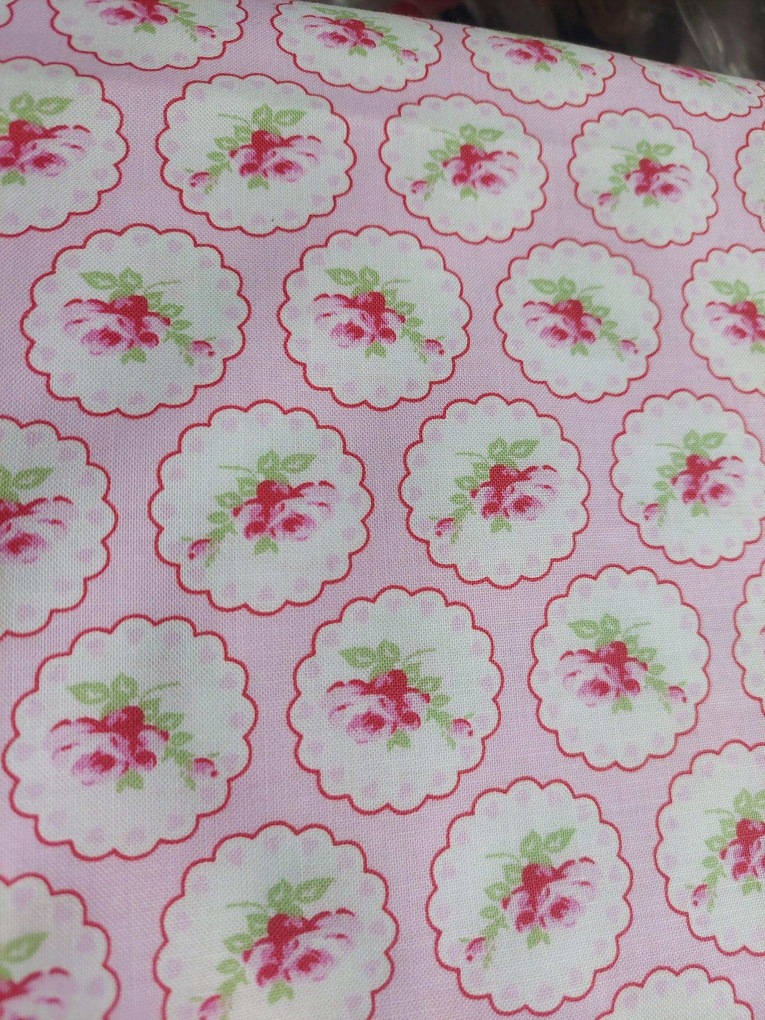 Valentine Roses cotton fabric by Tanya Whelan for Free Spirit PWTW078Pink